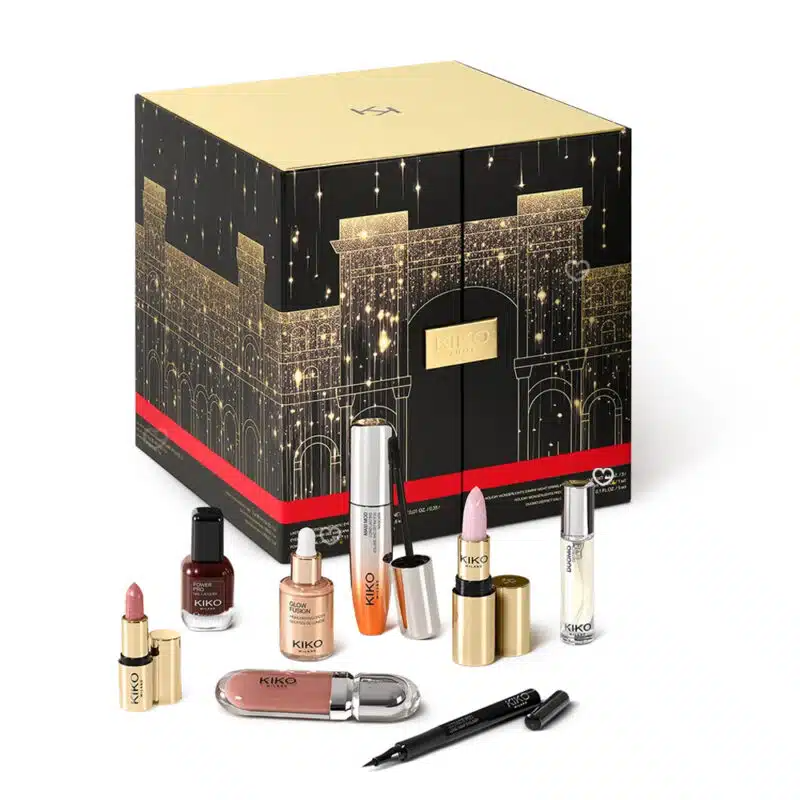 Le calendrier de l’avent Beauté Kiko Milano contient 24 produits de maquillage, de soins et d’accessoires makeup pour une valeur totale estimée non communiquée.