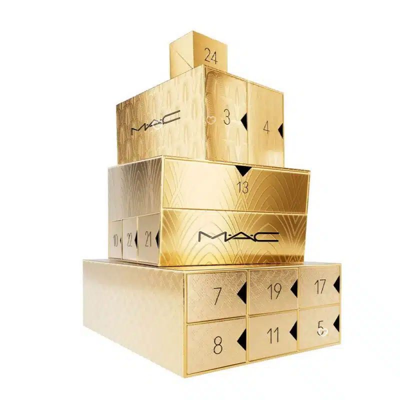 Présenté sous forme de building composé avec des écrins dorés, ce sont 24 produits de beauté mac préférés qui s’y cachent pour vous faire briller tous les jours pendant les fêtes de fin d’année !