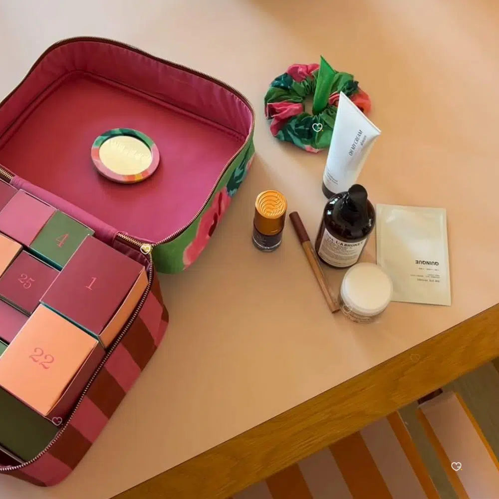 Présenté vous forme de vanity en coton, vous retrouverez à l’intérieur 25 surprises beauté pour le corps, le visage mais aussi des soins capillaires et du maquillage.